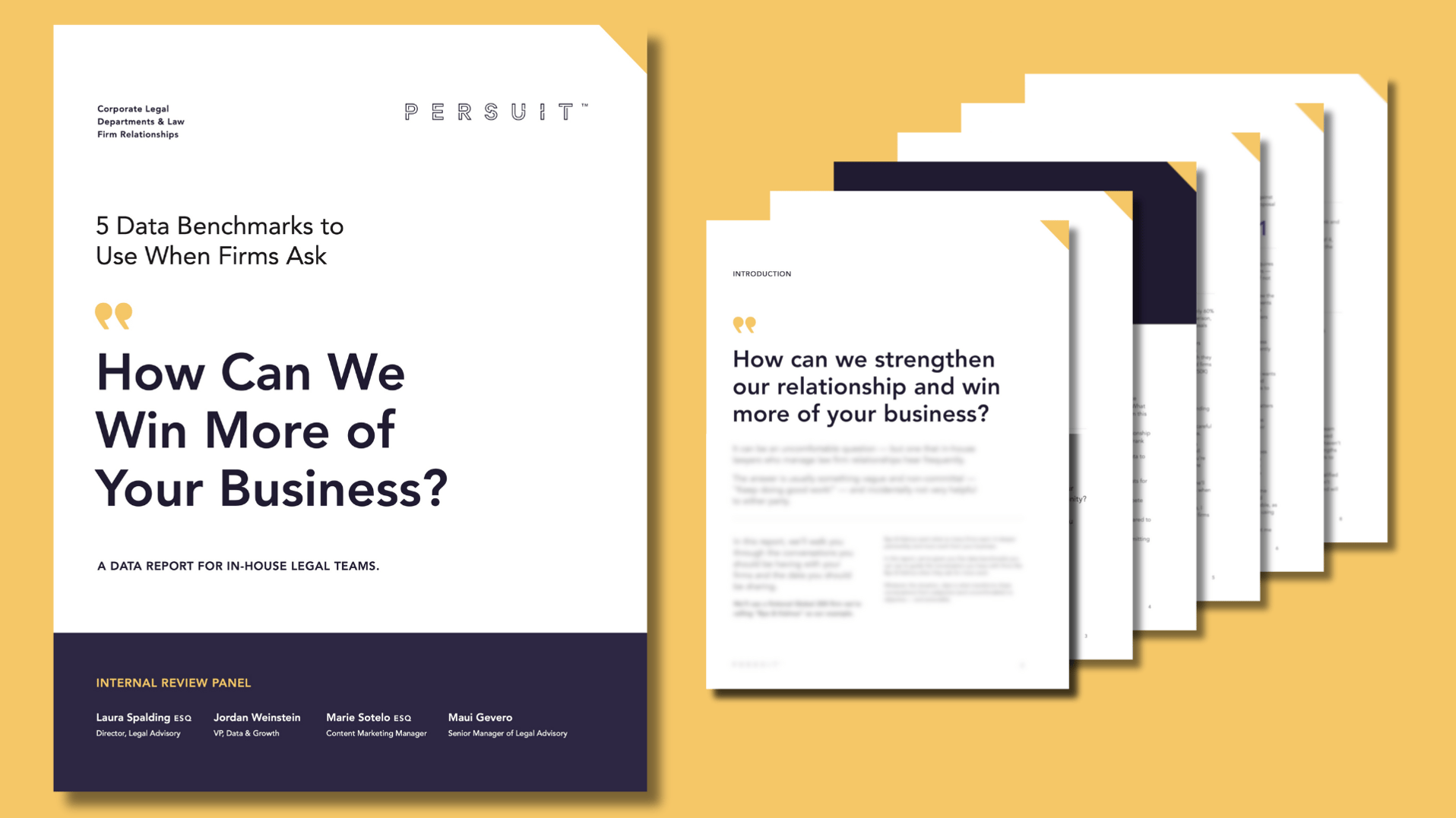 Looking for benchmark data about the pricing, discounts, and the competitiveness of top law firms? Read our data report: 5 Data Benchmarks to Use When Firms Ask: “How Can We Win More of Your Business?”